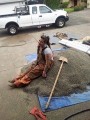 A man is laying on the ground with a shovel.