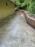 A concrete walkway leading to a building with stairs.